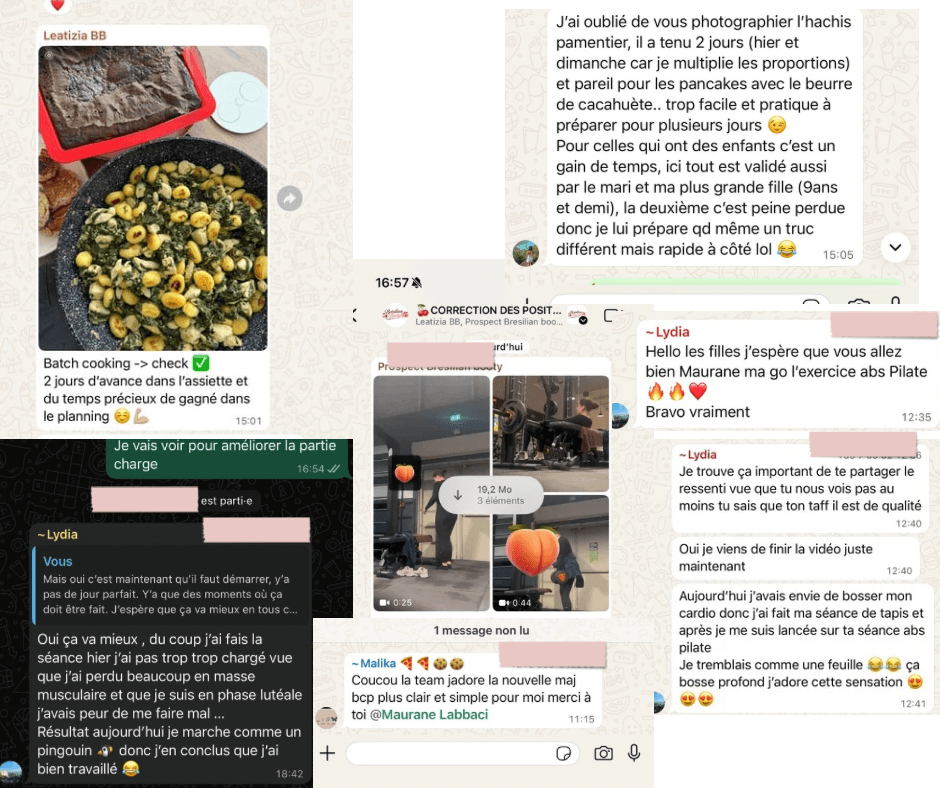 Non car tu es dans un groupe whatsapp où tu peux poser tes questions, tu peux noter tes réussites, parler avec d’autres femmes qui font le même programme, tu peux aussi mettre les vidéos de tes positions pour que je corrige. En gros, je suis là pour toi.
